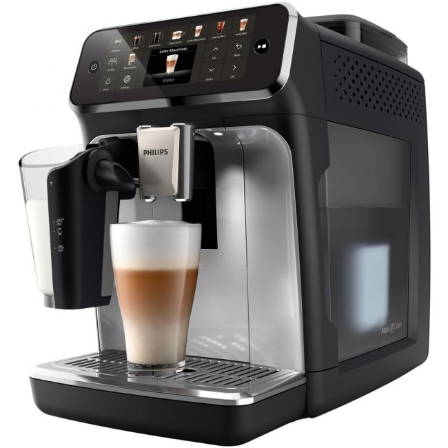 - Funkcja Extra Shot - Technologia SilentBrew - System spieniania mleka LatteGo - Części można myć w zmywarce - tacka ociekowa, LatteGo - Profile użytkownika - 4 profile + profil gościa - Aroma Seal - Regulowana wysokość wylewki kawy - 85–145 mm - Wyjmowany blok zaparzający - Pojemnik na mleko o pojemności 0,26 l - W zestawie - miarka, pasek do sprawdzania twardości wody, filtr AquaClean, tubka smaru, pokrywka pojemnika LatteGo